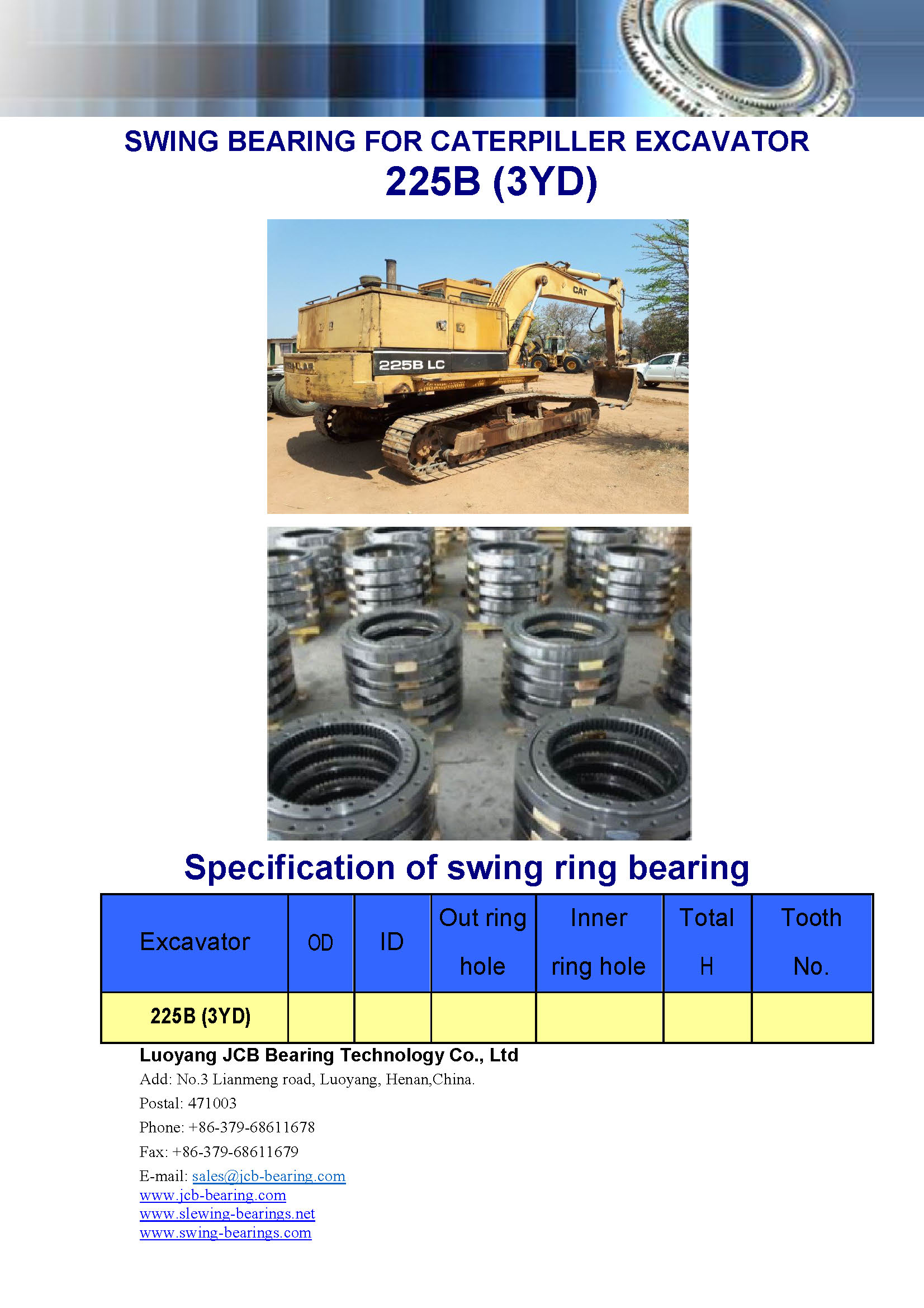 Download : specification of swing bearing excavator 225B(3YD)