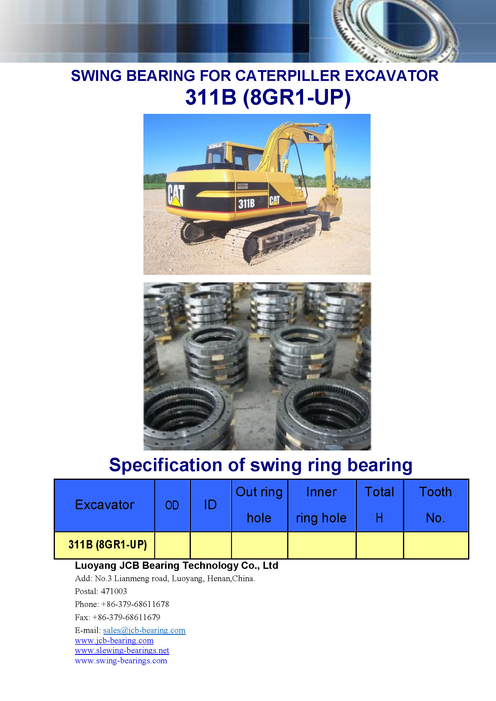 Download : specification of swing bearing for excavator 311B(8GR1-UP)