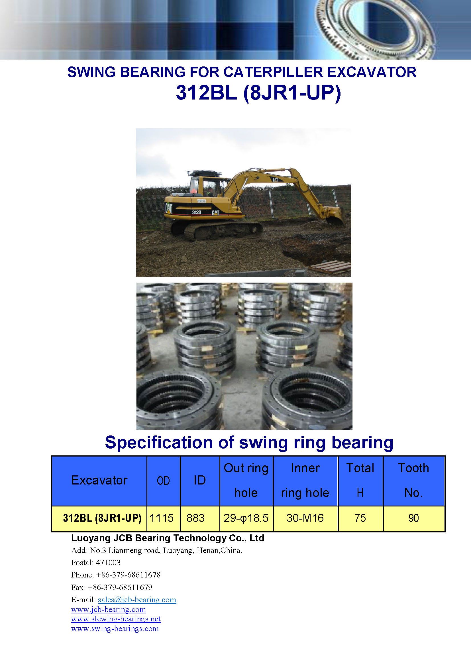Download : specification of swing bearing for excavator 312BL(8JR1-UP)