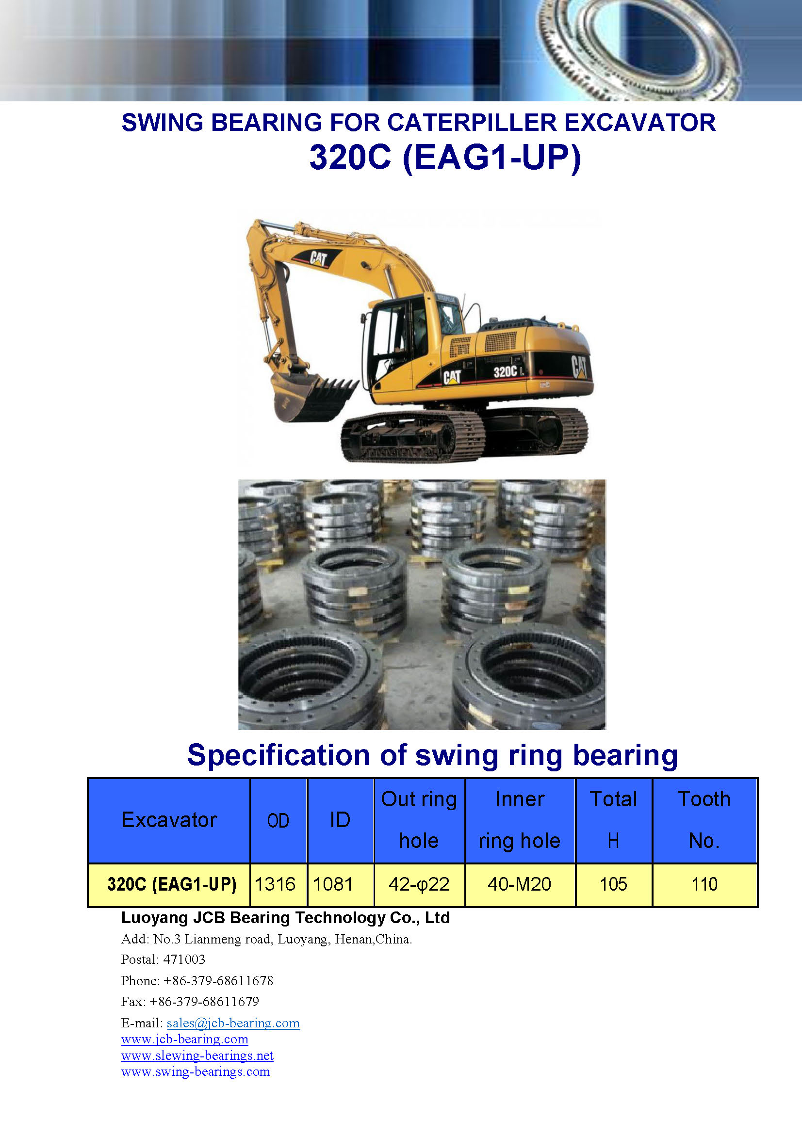 Download : specification of swing bearing for excavator 320C(EAG1-UP)