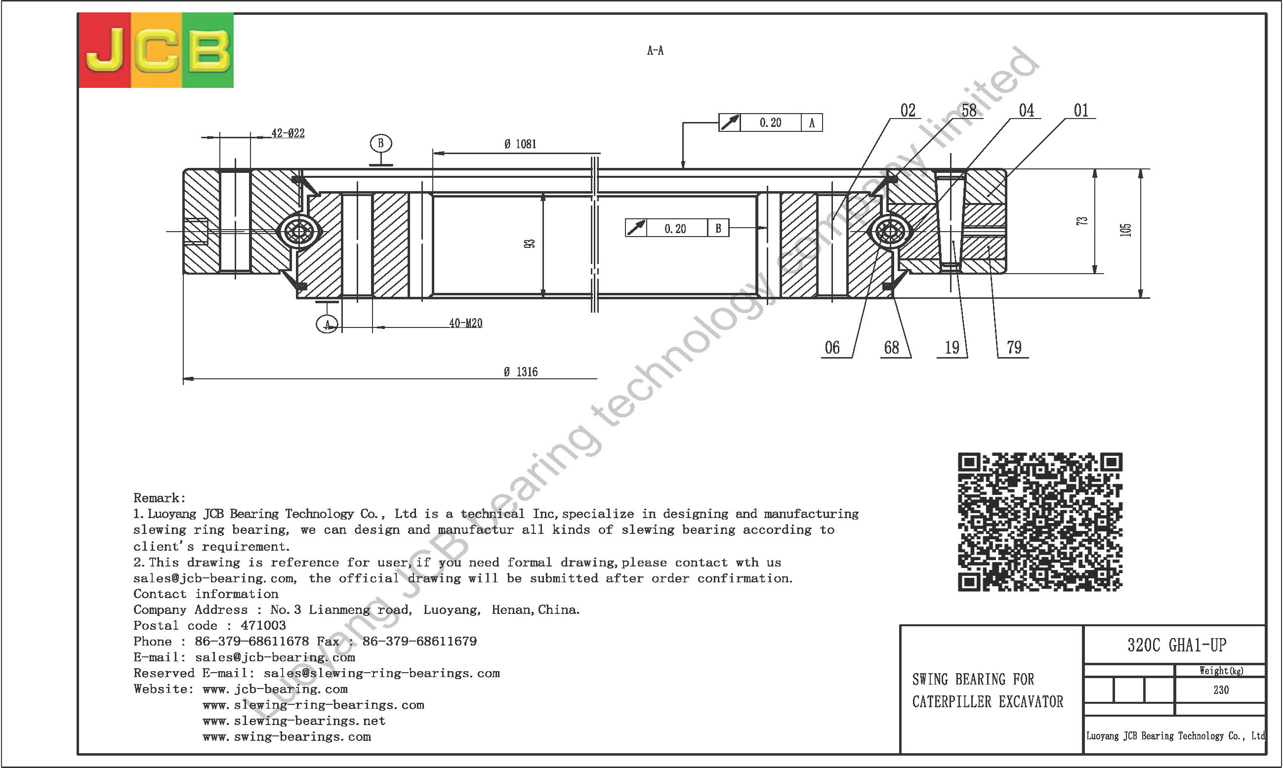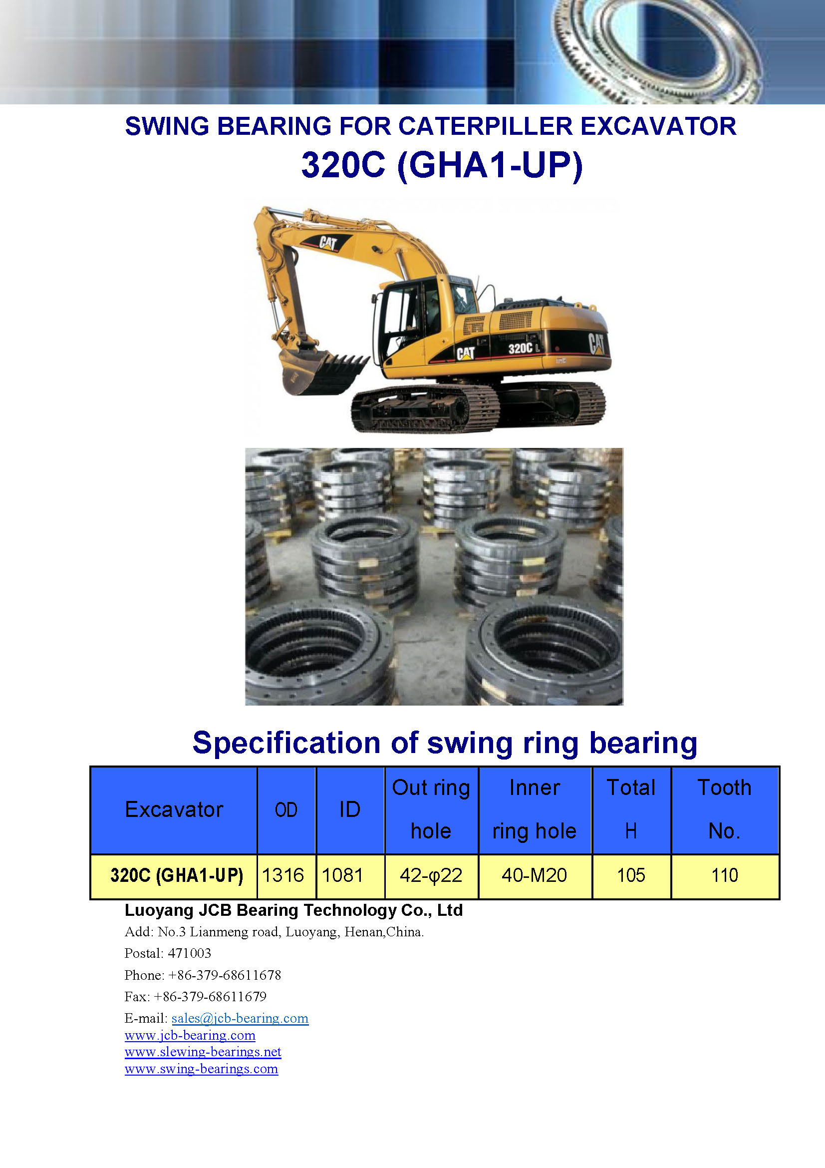 Download : specification of swing bearing for excavator 320C(GHA1-UP)
