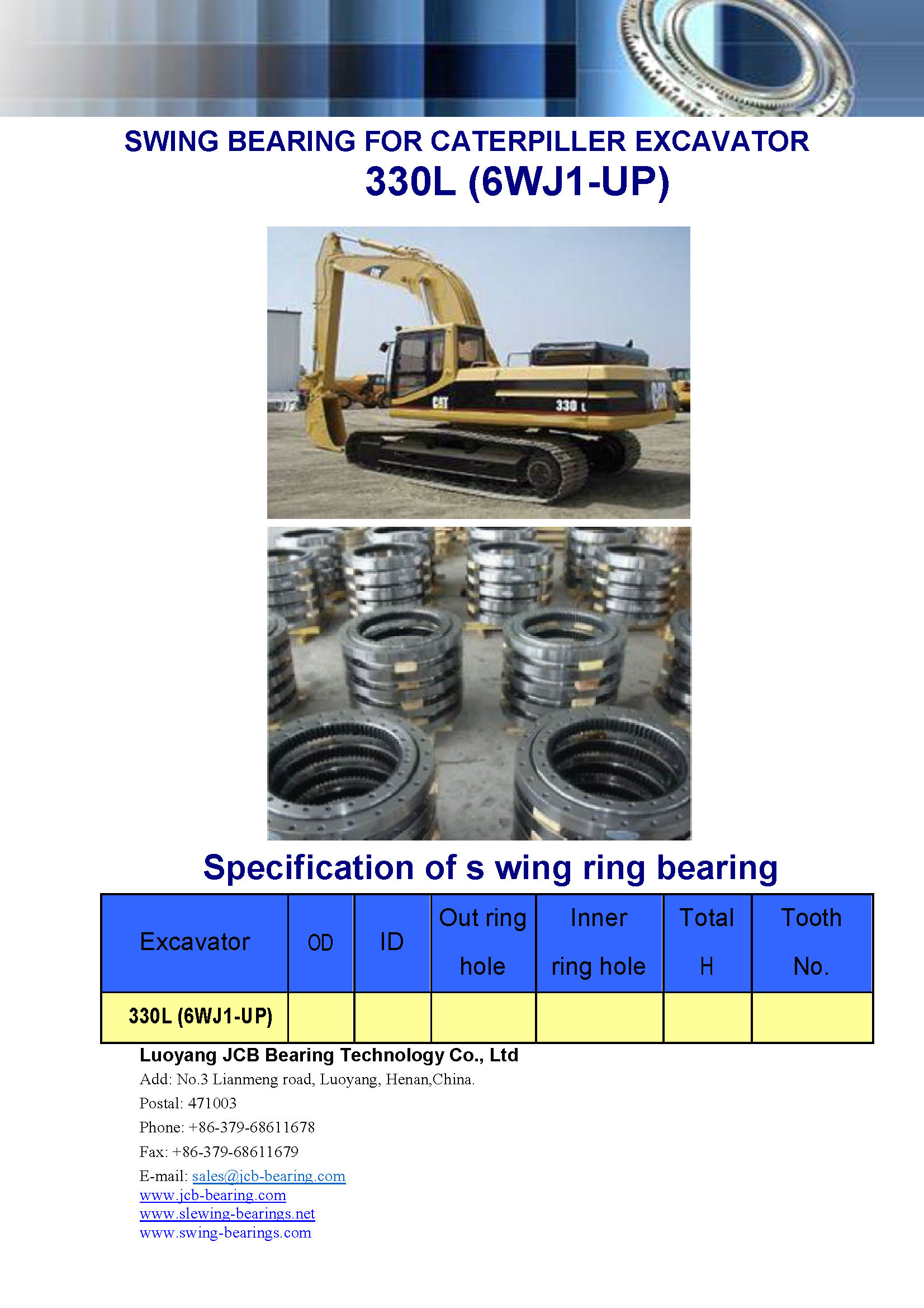 Download : specification of swing bearing for excavator 330L(6WJ1-UP)
