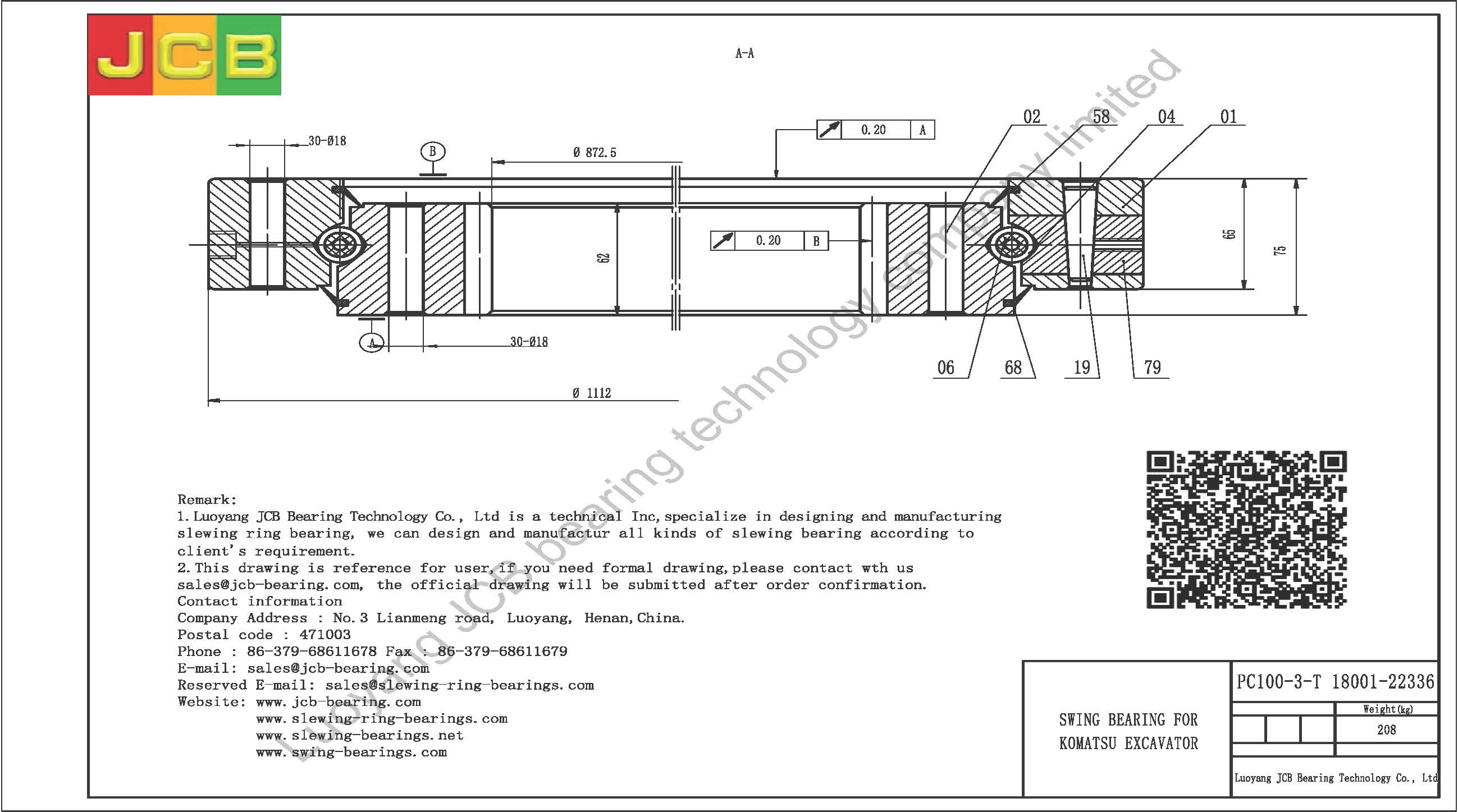 Download : drawing of swing bearing for excavator PC100-3-T(18001-22336)