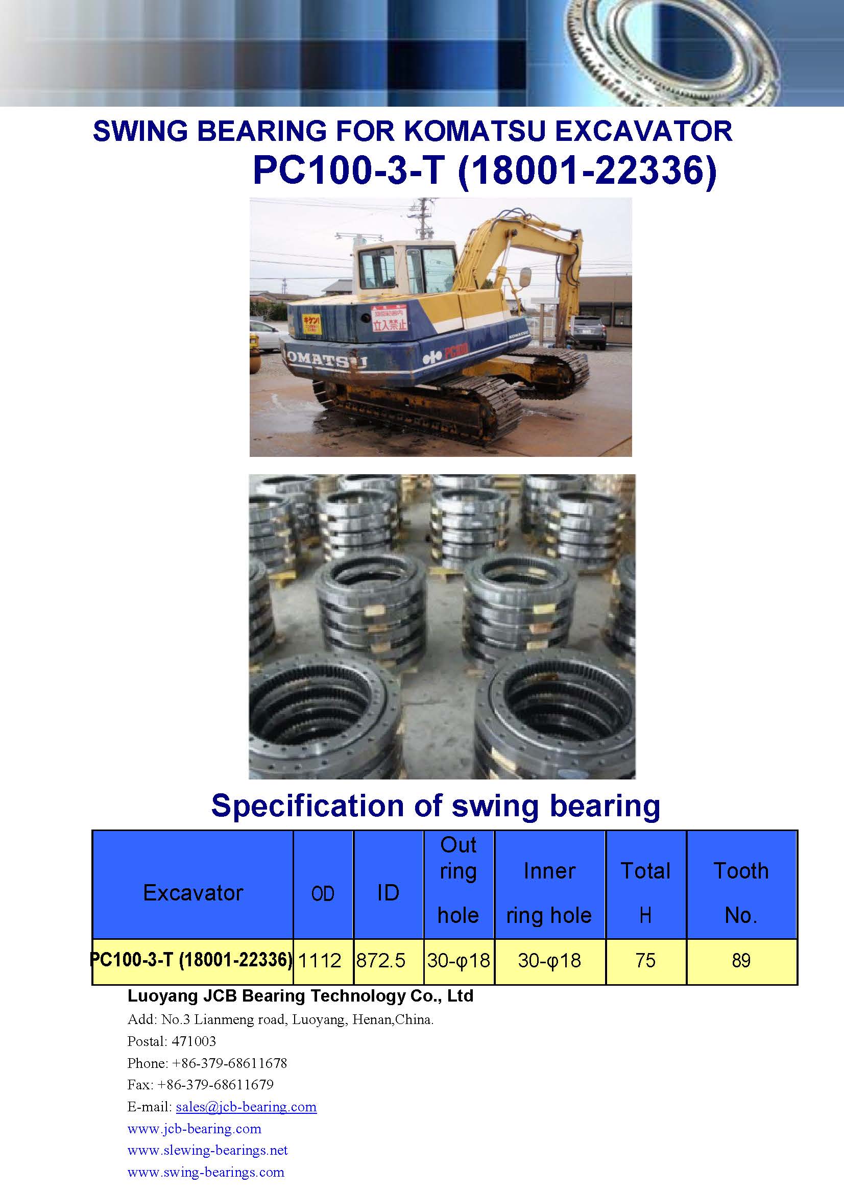 Download : specification of swing bearing for excavator PC100-3-T(18001-22336)