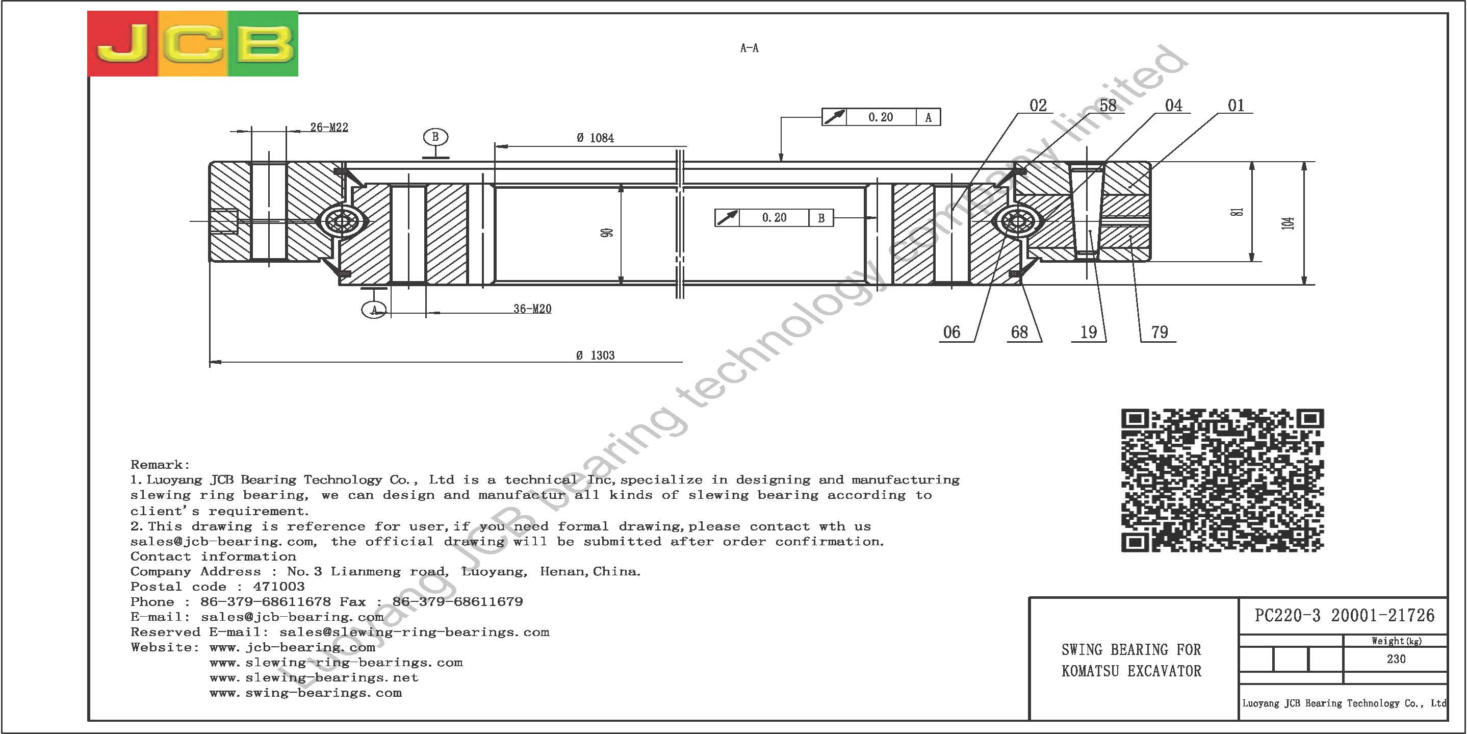 Download : drawing of swing bearing for excavator PC220-3(20001-21726)