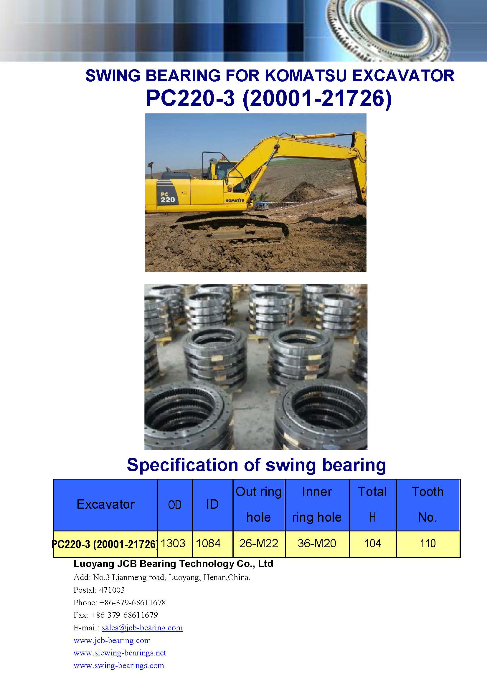 Download : specification of swing bearing for excavator PC220-3(20001-21726)