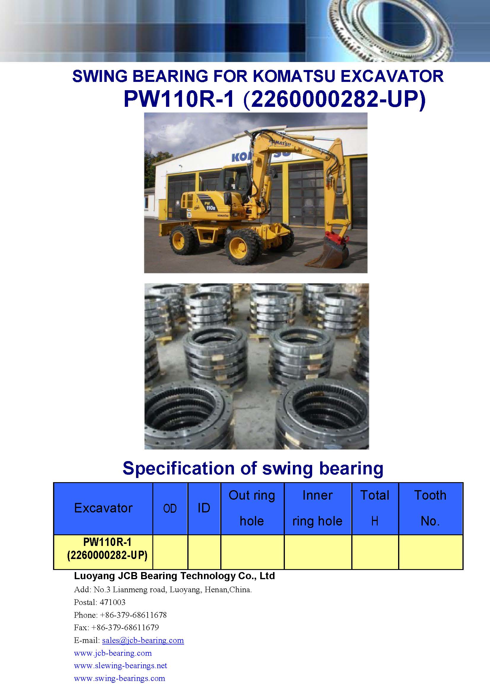 Download : specification of swing bearing for excavator PW110R-1 (2260000282-UP)